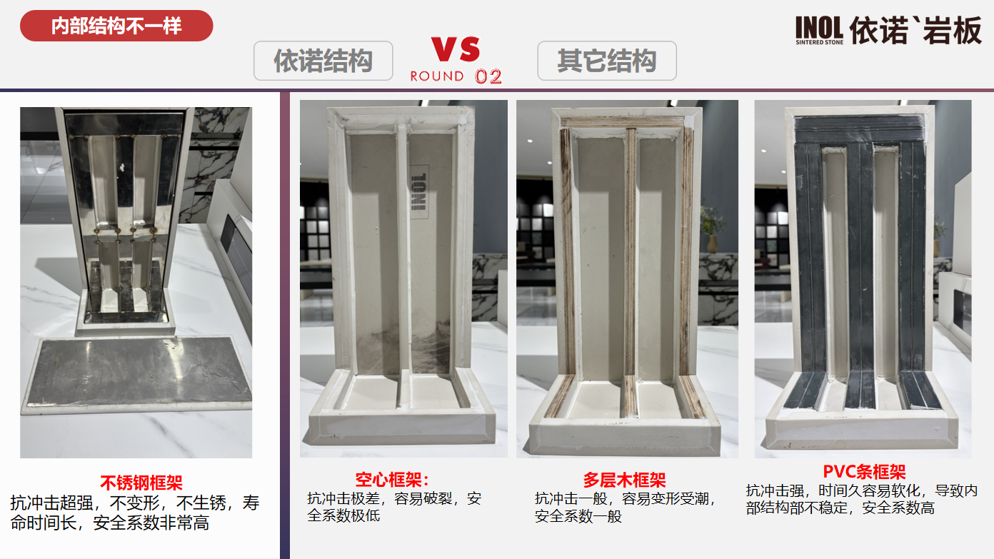 在产品特点方面,依诺岩板有着众多令人瞩目的优势。首先,它拥有一体化制造的优势,50万㎡智能工厂加上16万㎡专业仓库,工厂直达终端,消除了中间环节,使得产品的性价比优势明显。其次,技术领先是依诺岩板的一大特色。行业首创的连纹大板,纹理无缝衔接,视觉效果震撼,解决了传统瓷砖的割裂感问题,能为空间带来更连贯、大气的视觉体验。而且,依诺岩板全规格全厚度,从3mm柔性岩板到20mm加厚台面,覆盖了所有应用场景,可实现空间一体化设计。再者,其定制服务十分专业,6000㎡加工中心提供一站式解决方案,满足客户多样化的需求。此外,依诺岩板采用国际供应链,意大利萨克米设备加上西班牙陶丽西釉料,品质对标国际标准,吸水率≤0.1%,抗折强度≥50MPa,甲醛释放量达到欧盟E0级标准,A1级防火、莫氏6级硬度,0.05%超低吸水率,各项性能指标都非常出色。