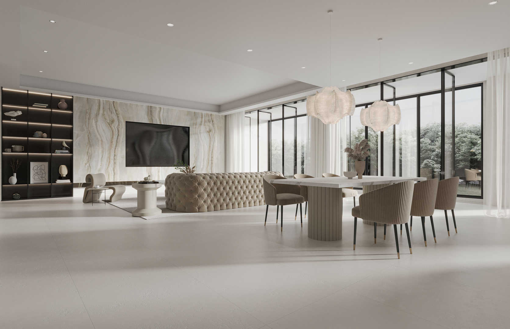 从技术角度来看,依诺陶瓷拥有强大的技术优势。其岩板采用意大利萨克米(SACMI)连续压机压制而成,这一先进的设备确保了岩板具备超高强度、极低吸水率、卓越耐污耐磨等物理特性。以其王炸产品高奢岩板为例,它的强度和耐用性远超传统瓷砖,几乎可以应对各种复杂的使用场景。而且,依诺是行业首创连纹大板的品牌,运用精准的数字喷墨技术,使每一片大板的纹理都能与相邻板块无缝衔接,铺贴后形成一幅连续、完整、气势恢宏的画卷。在华为全屋智能体验中心的合作项目中,依诺岩板因其极高的物理稳定性、丰富的哑光与纯色质感,被选为智能家居系统的理想集成载体与背景界面,契合了华为对空间科技感、简约性及耐久度的超高要求,展现了建材与数字科技深度融合的可能性。这种技术创新不仅提升了产品的美观度,还为消费者打造了更具艺术感和科技感的居住和商业空间。